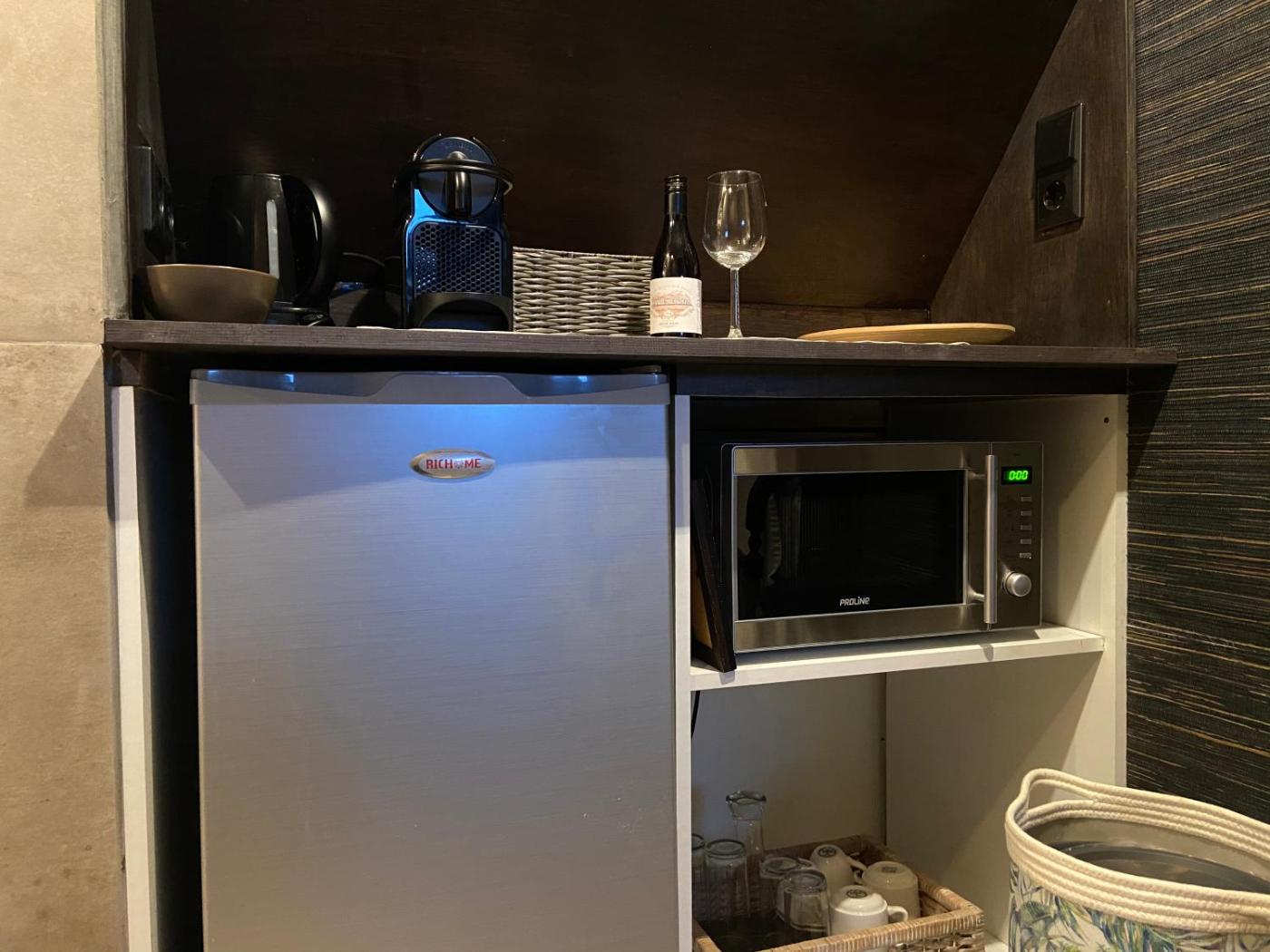 Deluxe Queen Studio. Guests will find a refrigerator, kitchenware, a microwave and a tea and coffee maker in the well-equipped kitchenette. The studio also provides guests with a barbecue. The studio provides a private entrance, soundproof walls, a terrace with garden views as well as a private bathroom featuring a walk-in shower. The unit offers 1 bed.