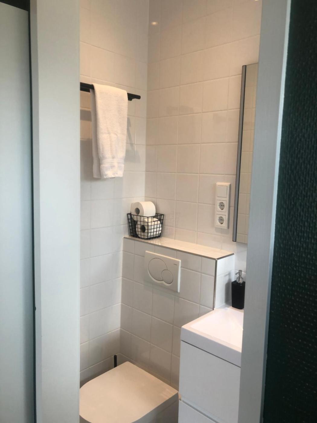 Double Room. This double room has a wardrobe, table and 2 chairs. There is a small fridge, an electric kettle and a coffee machine. Towels and bed linen are included. There is no door between the sleeping area and toiletshower. Guests can enjoy a terrace with outdoor furniture and views of the garden.